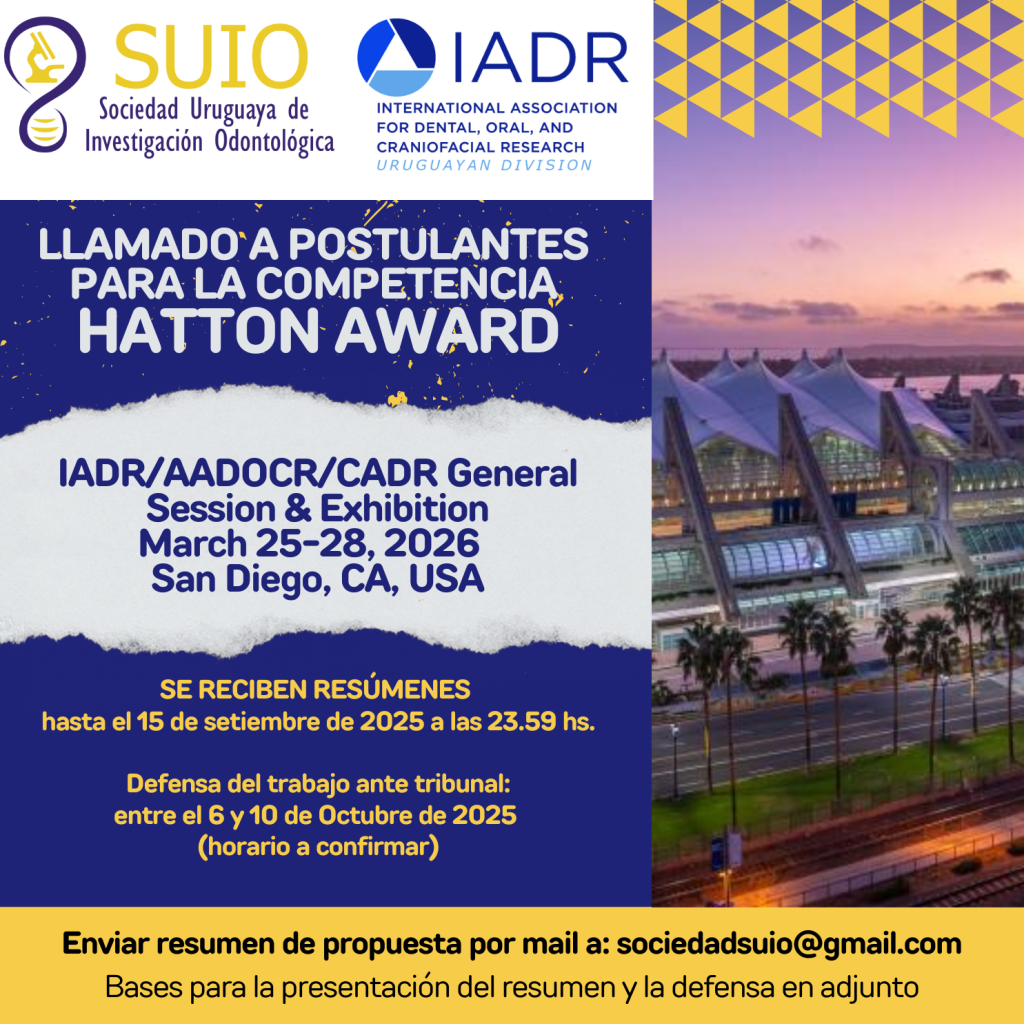 La competencia Hatton de la IADR está diseñada para brindar una oportunidad a los mejores investigadores jóvenes de todas las Divisiones y Secciones de la IADR de presentar sus investigaciones en la Sesión General anual de la IADR. De estos competidores internacionales, hasta seis (6) podrán recibir premios monetarios y placas conmemorativas en las categorías junior y senior.